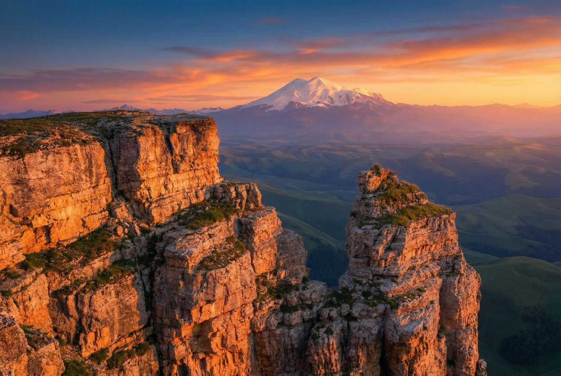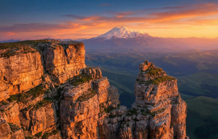 Бермамыт — идеальная природная смотровая площадка. Вы увидите с него горные пики Бештау и Машук, скалы Монахи и могучие ущелья. Даже сам седой исполин Эльбрус предстанет перед вами в лучах солнца! Кроме того, опытный водитель-гид покажет каменный амфитеатр и южную стену Малого Бермамыта.