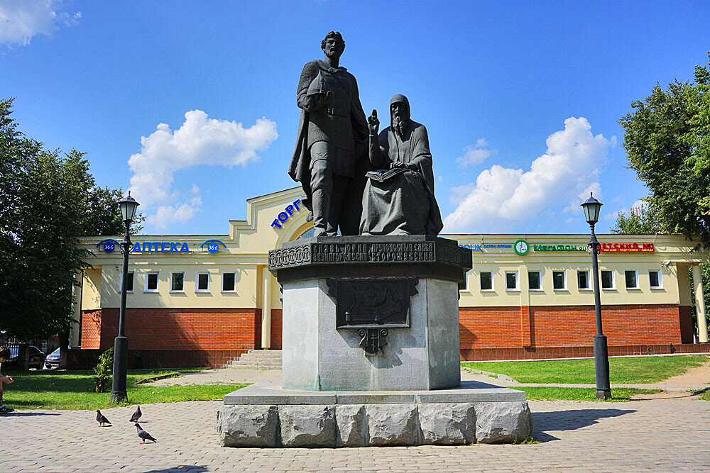 Две исторические личности — яркий пример единения светской и церковной власти во имя развития и процветания родной земли. Памятник установлен в 2005 году на аллее городского сквера там, где начинается улица Московская, ведущая к Саввино-Сторожевскому монастырю.