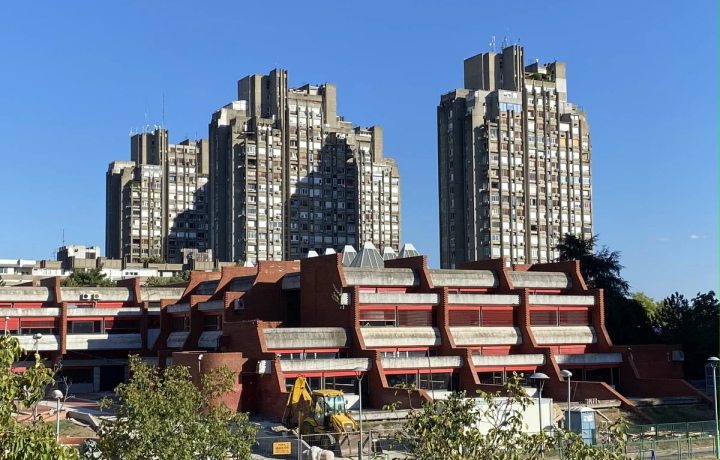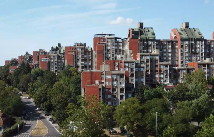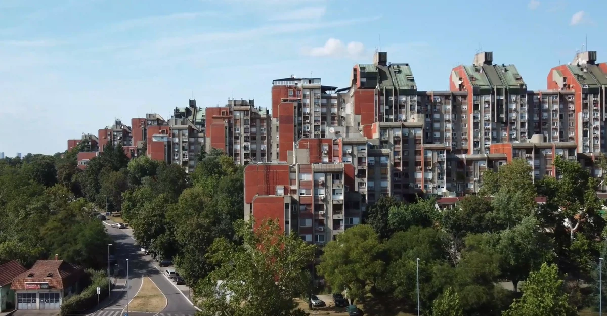 Ступенчатые высотки жилищного комплекса «Рудо». В народе его называют Восточными воротами Белграда. Комплекс расположен на холме, благодаря чему его хорошо видно даже из самых отдалённых районов. Это не спроста, ведь он строился как символ величия социалистической власти страны.