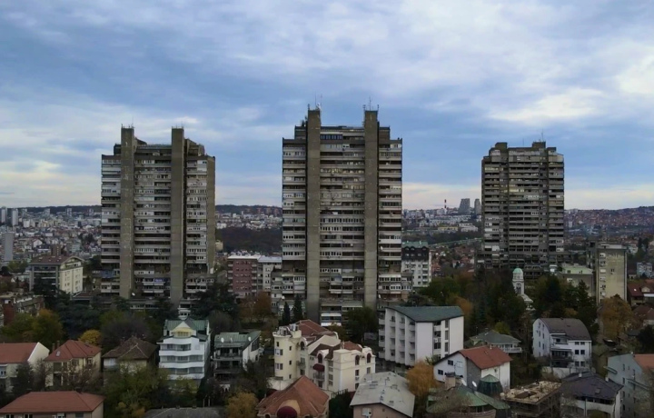 Башни «Вождовац». Эти три массивные башни значительно выше окружающих строений. Они выделяются фасадами из голого бетона, наклонными балконами в области первых этажей и массивными бетонными рогами, которые устремляются к небу.