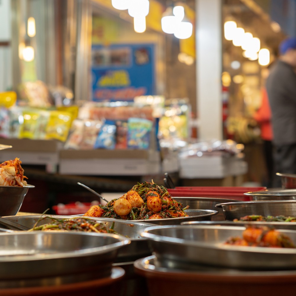 Окунёмся в известный рынок уличной еды в Сеуле! Вы увидите корейские деликатесы: ттокбокки (острые рисовые клёцки), сундэ (кровяная колбаса), сырую печень, живого осьминога. И понаблюдаете за поведением местных жителей и их стилем общения на рынках.
