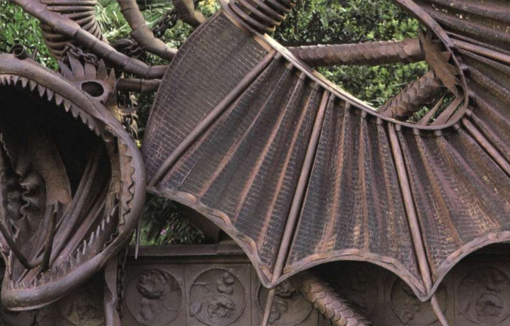 Павильоны усадьбы Гуэль в Педральбесе. Поговаривают, что дракон на центральных воротах временами оживает — и готов сожрать любого неприятеля.