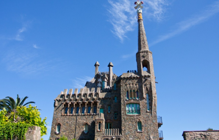 Замок Бельесгуард. Гауди воссоздал средневековые укрепления и построил замок для семьи Фигерас. Когда-то на этом месте оборвалась королевская династия каталонских правителей. Тут же была база знаменитого разбойника Серальонга.