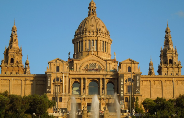 Сразу за фонтаном вы увидите величественный дворец. Построенный в духе испанского Ренессанса как главный павильон Всемирной выставки 1929 года, после он превратился в Музей национального искусства Каталонии. Сегодня тут хранится большая коллекция романского искусства, картины Эль-Греко, Тициана и Рубенса, шедевры модерна.