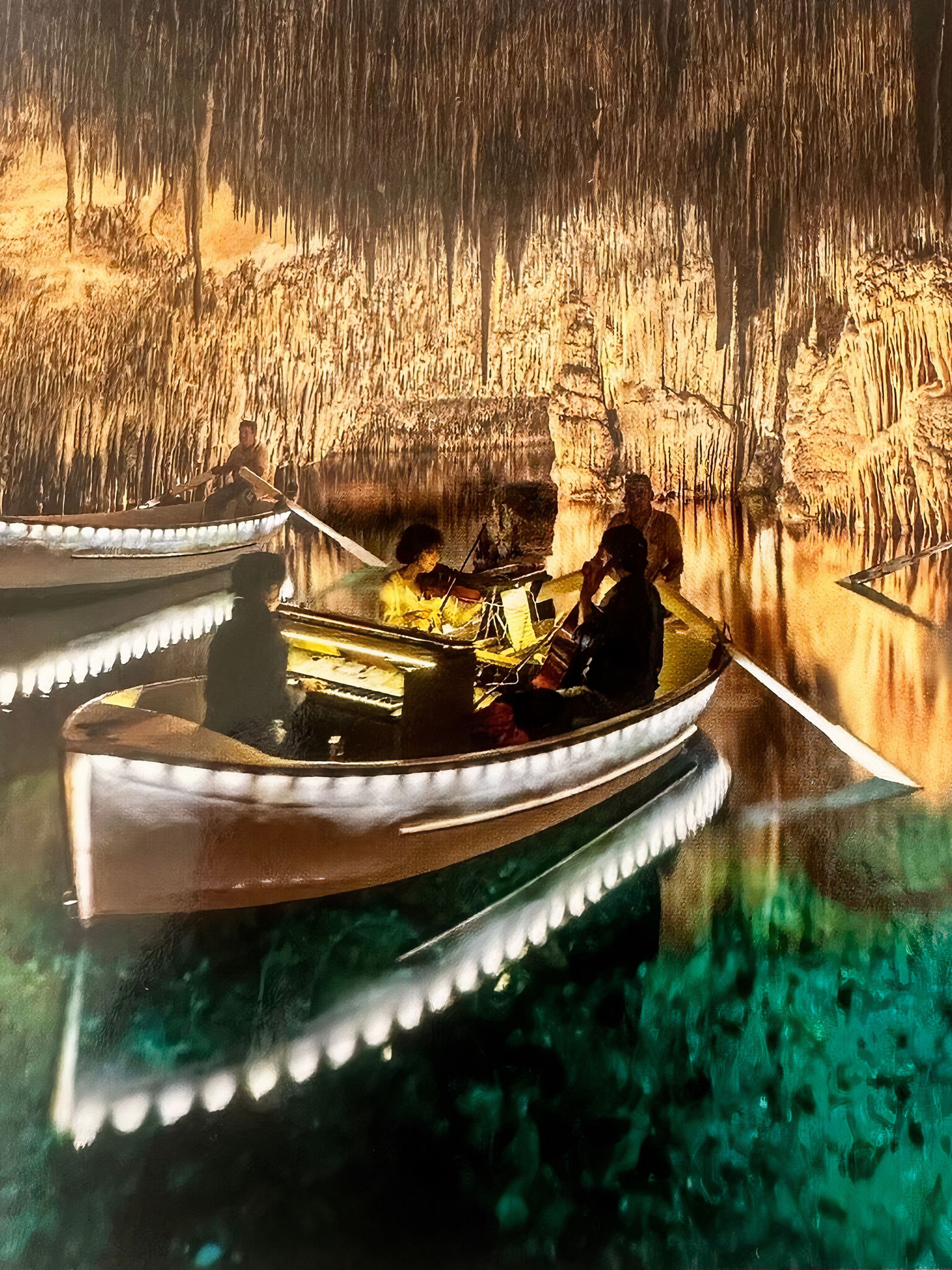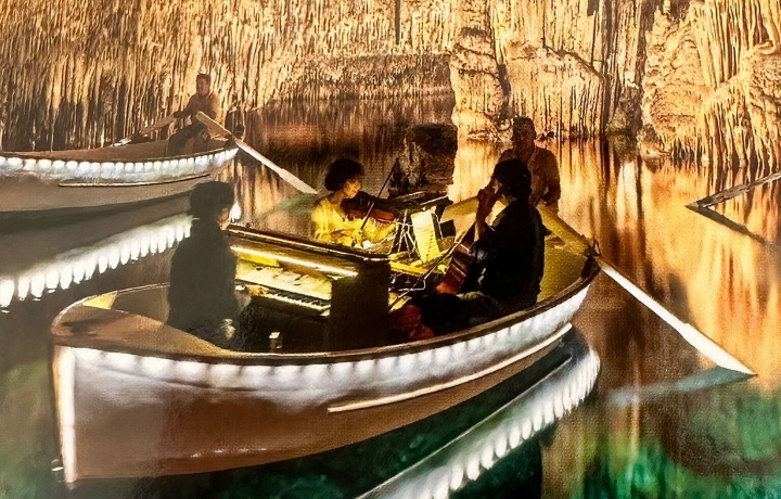 🔹 Пещеры Дракона в Порто Кристо. Здесь, внутри, нас ждет встреча с озером Мартель — одним из крупнейших подземных озер в Европе. Мы услышим живой концерт классической музыки, который пройдет прямо на лодках, плавающих по озеру. После концерта нас ожидает короткое, но увлекательное путешествие на лодке к выходу из пещеры.
