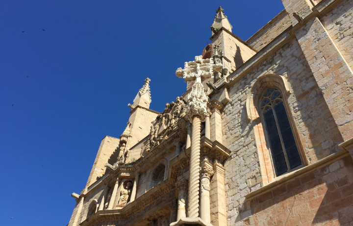 Пока я расскажу вам историю о древнем иберийском поселении, мы не спеша спустимся на площадь Санта Мария (Plaça Santa Maria) к южному фасаду главного собора Монблана. Вашему взору предстанет великолепный портал церкви в стиле барокко с элементами ренессанса, разнообразными барельефами, фигурами, цветами и плодами.