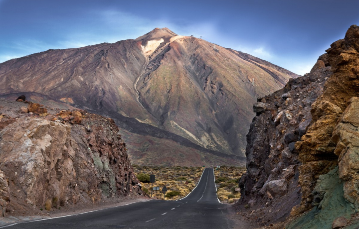 Дорога сквозь облака и вулкан-символ Тенерифе