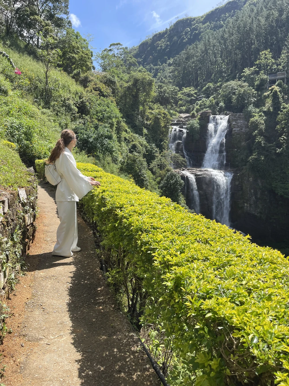 10:15–11:15 — прогулка через чайные плантации на Малый пик Адама: шикарный вид на Элла рок, серпантин дорог, водопад Равана, чайные плантации и зелень соседних холмов