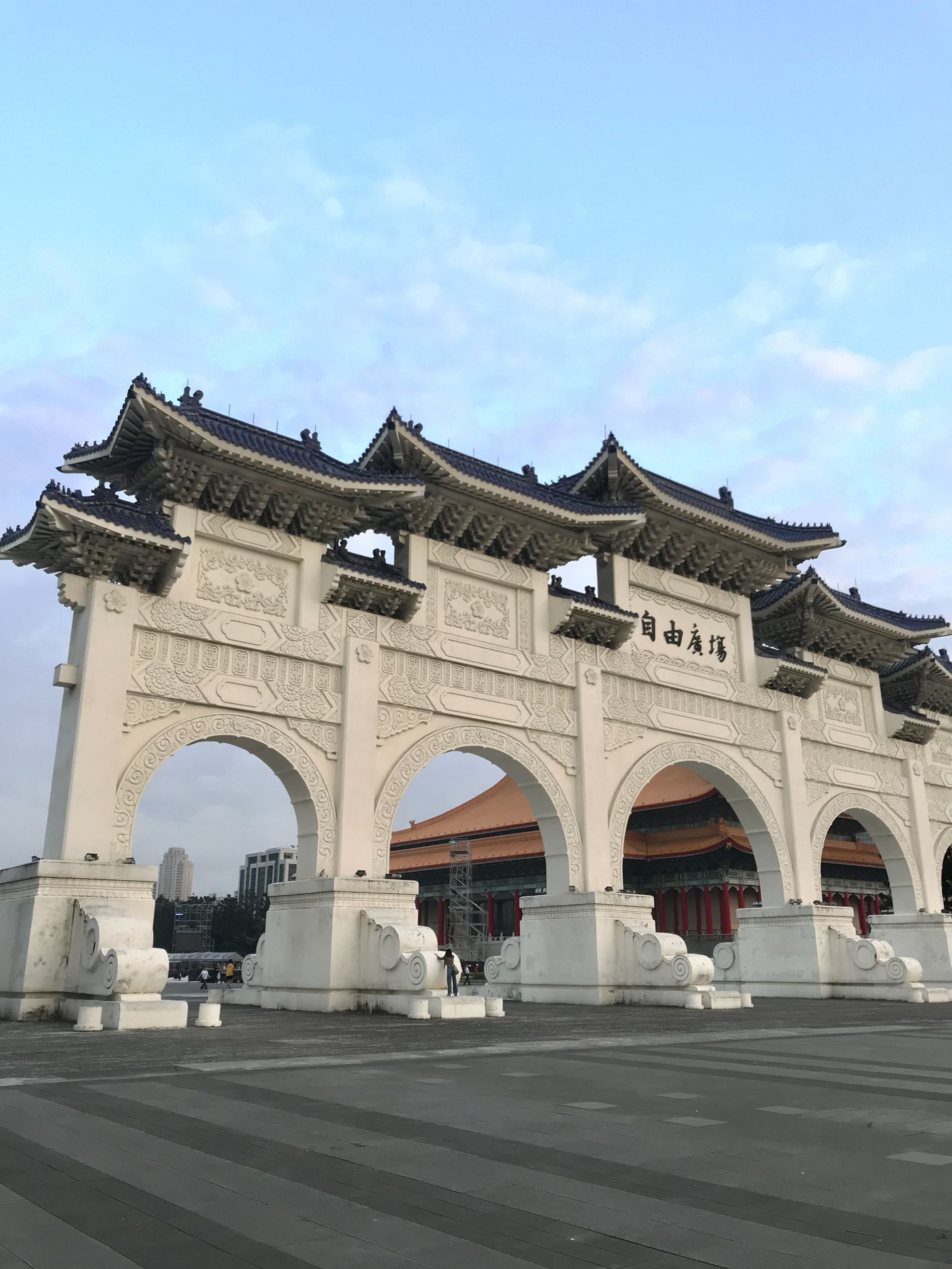 Огромные белоснежные колонны, просторная площадь и торжественная смена караула. Это не просто фотозона — здесь ощущается масштаб истории Тайваня и энергия места.
