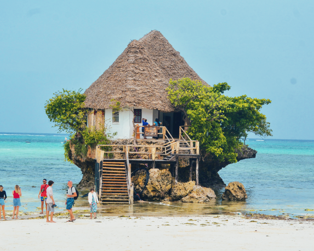Ресторан-скала The Rock — культовая достопримечательность Занзибара. Он расположен в Пингу на восточном побережье острова. Открыточный вид на скалу можно застать только во время прилива ночью или ранним утром. Тогда небольшое каменное плато с колоритным рыбацким домиком-рестораном полностью окружается бирюзовой водой. В остальное время между рестораном и берегом можно спокойно пройти пешком по щиколотку в воде.