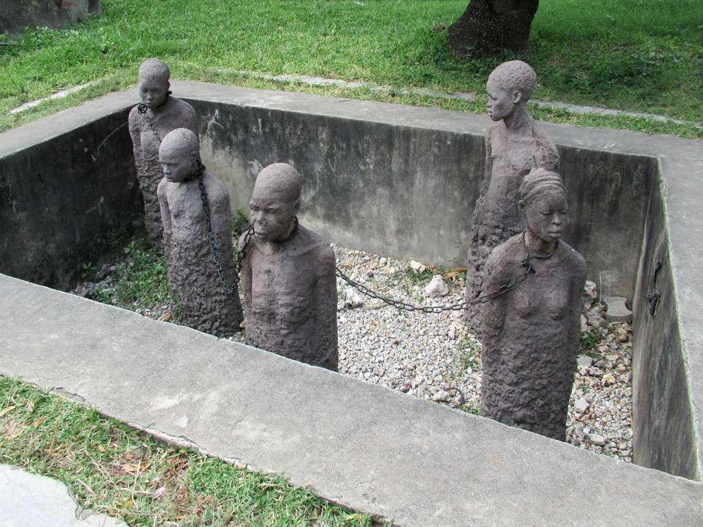 В XIX веке Занзибар был неофициальной столицей работорговли в Африке. В Стоун Тауне действовал крупнейший невольничий рынок, который закрыли только в 1873 году стараниями Дэвида Ливингстона — врача, миссионера и исследователя Африки. Теперь на месте бывшего рынка построена площадь с Англиканской церковью. Главный алтарь храма высится прямо на месте бывшего столба для битья. Там, где раньше была невольничья яма, сейчас расположен памятник — скульптуры несчастных рабов с ошейниками и цепями на шее, ожидающие своей участи. В особняке рядом с памятником сохранились подвалы для рабов. В каждом помещении перед продажей содержались по 65 человек — мужчин, женщин и детей.