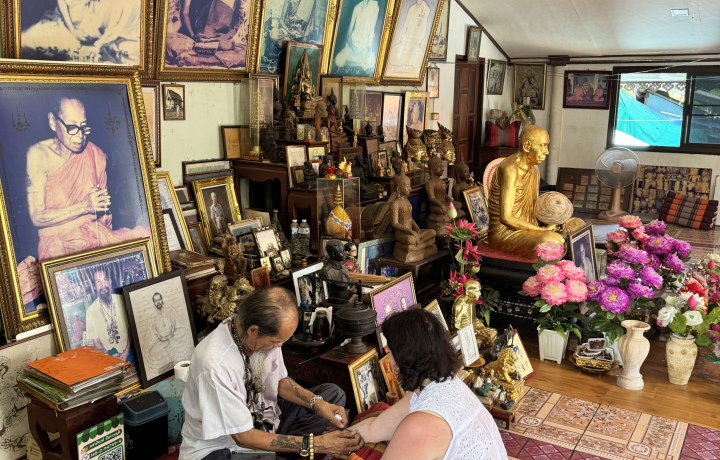В этом храме ежегодно проводится знаменитый тату фестиваль «Вай Кру». Темы Я переведу ваши вопросы к аджану и его ответы вам, будет очень понятное общение. Самое главное, Аджан посмотрит вашу ладонь и сможет рассказать о вашей удаче, деньгах и здоровье, а так же подскажет как это улучшить. Вы услышите об истории Сак Янт и их значении. Узнаете, что таит в себе Сак Янт, как появился и для чего нужен. Я обязательно расскажу, как ухаживать за татуировкой. Интересные факты и детали Самое главное — Аджан может читать состояния человека по ладони и линиям, посмотреть ваше здоровье, материальное состояние и удачу. А далее, с помощью Сак янта (магической тату), которое он порекомендует, улучшить эти аспекты.