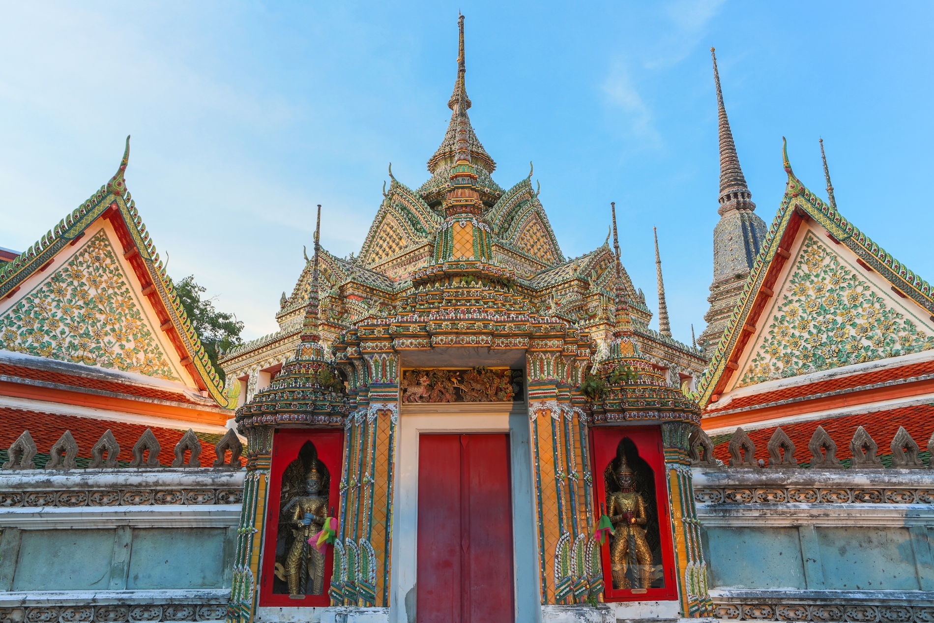 Первой остановкой станет Большой королевский дворец — парадная резиденция королей Таиланда, поражающая роскошью архитектуры и изысканными деталями. На его территории расположен Храм Изумрудного Будды — самый священный храм страны, где хранится почитаемая статуя Будды из нефрита.