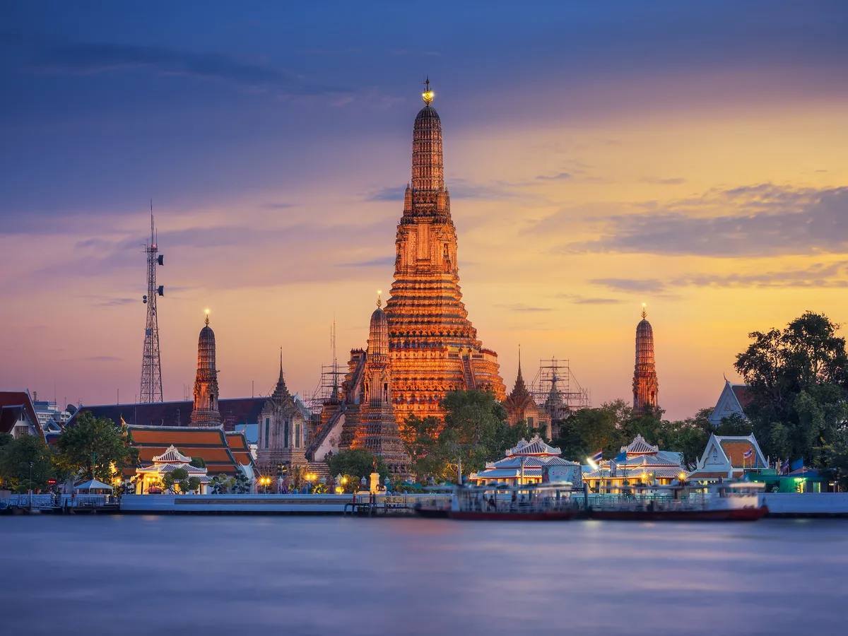 Затем вы переправитесь через реку Чао Прайя и посетите Ват Арун — Храм Рассвета, один из самых узнаваемых символов Бангкока, величественно возвышающийся на берегу.