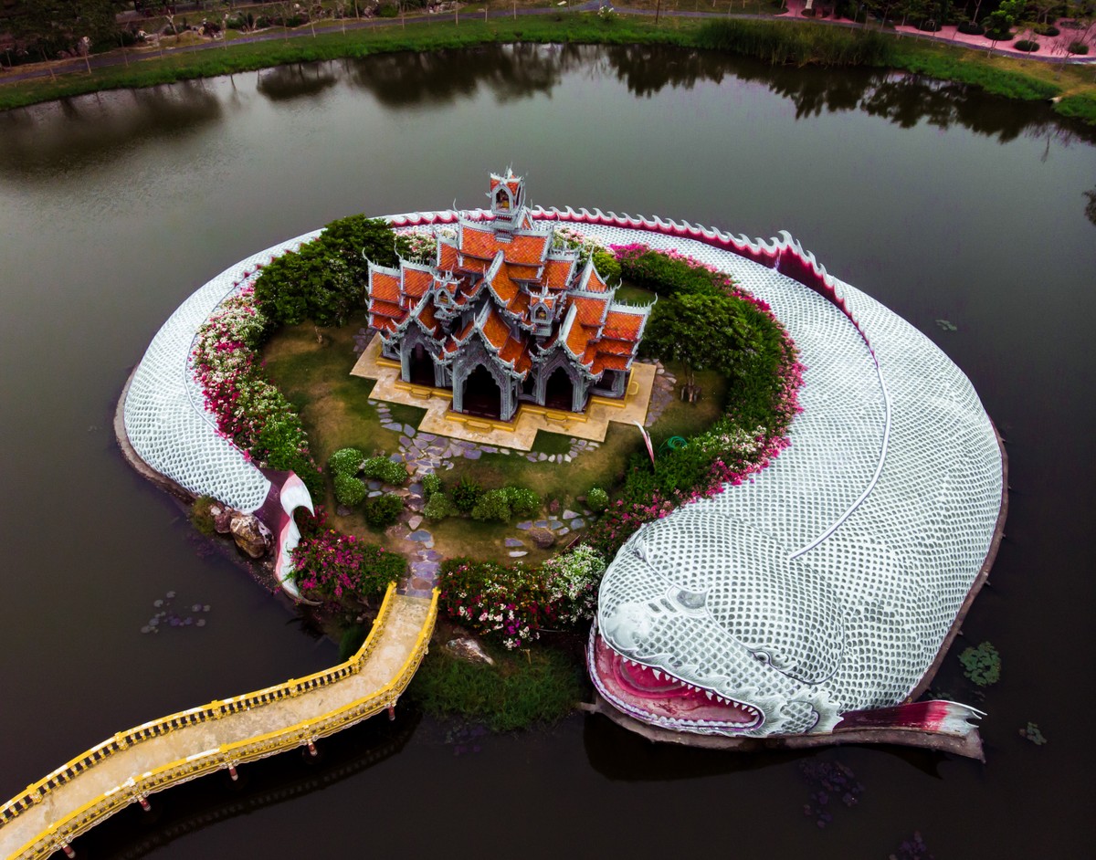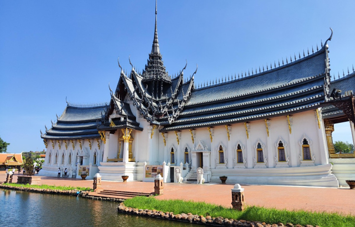 Отправимся в тематический парк, повторяющий контуры Таиланда. Здесь воссоздана давно исчезнувшая архитектура разных эпох: храмы, рыбацкая деревня, плавучий рынок и другие постройки. Мы увидим: