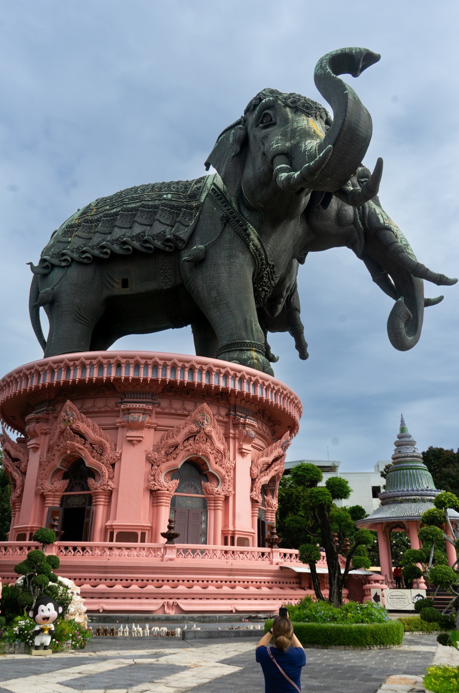 Погуляем по тропическому саду с мифическими существами и посетим храм в виде трёхголового слона. Внутри — 3 этажа с индуистской моделью вселенной. Рассмотрим витражный потолок с картой мира и знаками зодиака, познакомимся с антиквариатом и реликвиями, по винтовой лестнице поднимемся к голове.