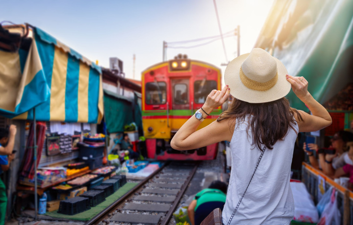 Кульминацией дня становится железнодорожный рынок Маклионг — уникальное место, где поезд следует буквально сквозь толпу торговцев. Вы увидите, как за секунды рыночные ряды трансформируются, чтобы пропустить состав, а затем мгновенно возвращаются на место.