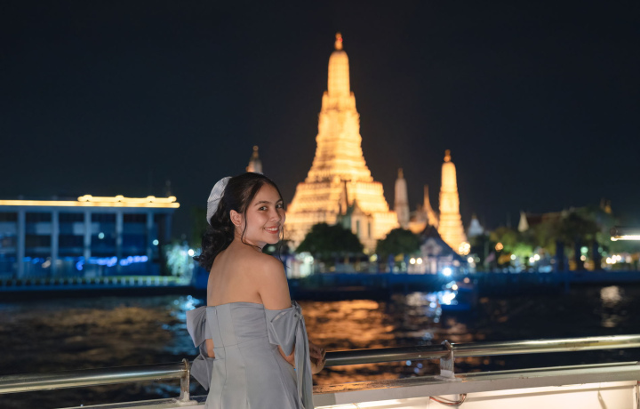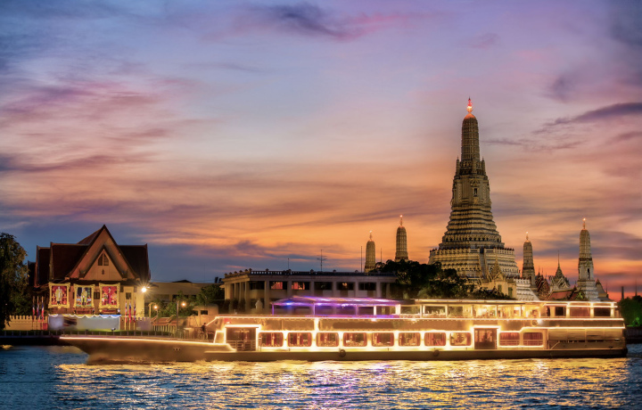 Приглашаем вас провести незабываемый вечер в сердце Бангкока на борту элегантного лайнера Meridian Cruise. Это идеальная возможность разделить особые моменты с близкими, любуясь величественной панорамой ночного города.