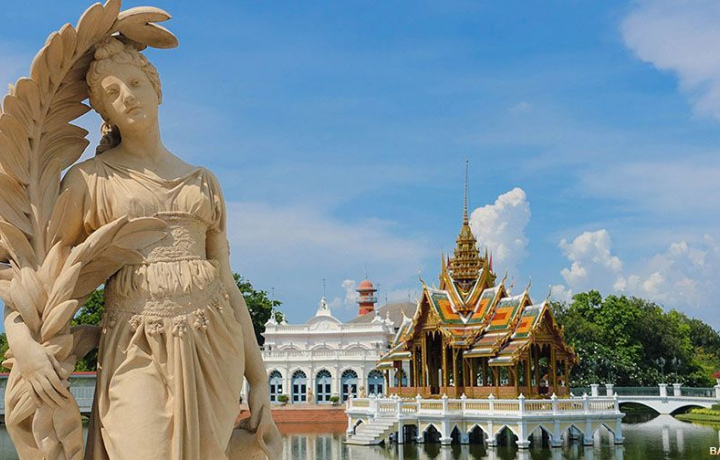 Начнём с посещения резиденции Банг Па-Ин на берегу реки Чаупхрайя. Этот дворец возвели в качестве летней резиденции для короля Рамы V — правителя, который по сей день считается самым великим в истории государства. Вы осмотрите его и отыщете черты, нехарактерные для тайской архитектуры. Все потому, что этот дворец был построен для приёма европейских посланников и правителей в привычной для них атмосфере.