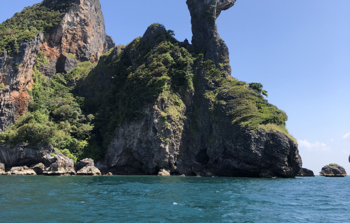 Третий остров маршрута называется Таб, посетим его во время отлива, чтобы успеть прогуляться по узкой косе, которая соединяет две части острова. Здесь вы насладитесь видами Андаманского моря и пообедаете тайским рисом с курицей. После обеда — отдых на пляже Прананг полуострова Рейли, куда стремятся скалолазы и профессиональные альпинисты со всего Таиланда. Причина — известняковые пещеры и причудливые скалы, похожие на сталактиты. Вы позагораете на открыточном райском пляже и откроете тайну «Пещеры принцессы», где по легенде погибла после кораблекрушения индийская принцесса, а теперь местные жители просят о продолжении рода в храме Лингама.