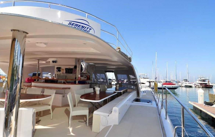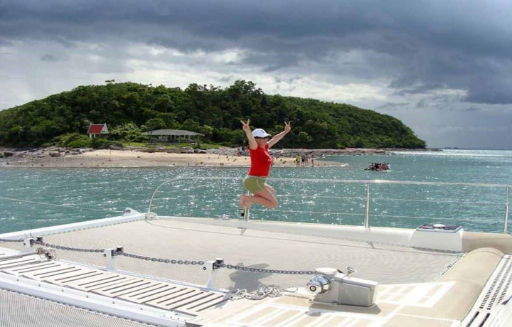 • Посещение 3 островов, где отдыхающие могут высадиться на пляж острова, попрыгать с 7 метрового батута в море, прокатится с 8 метровой надувной горки, заняться SUB-бордингом, половить рыбу, поплавать с маской и трубкой у коралловых рифов или просто отдохнуть на катамаране. • Обед шведский стол, который включает в себя: BBQ из курицы и свинины, национальный суп Том Ян, жаркое из курицы, жаркое из овощей, Пад Тай (жареный рис с яйцом), овощи и фрукты (арбуз, ананас).