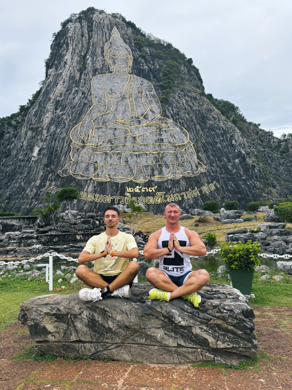 15:30 — гора Будды (Khao Chi Chan). На скале высотой более сотни метров золотыми линиями начертан образ Будды. Он виден издалека, но только вблизи понимаешь его масштаб и силу.