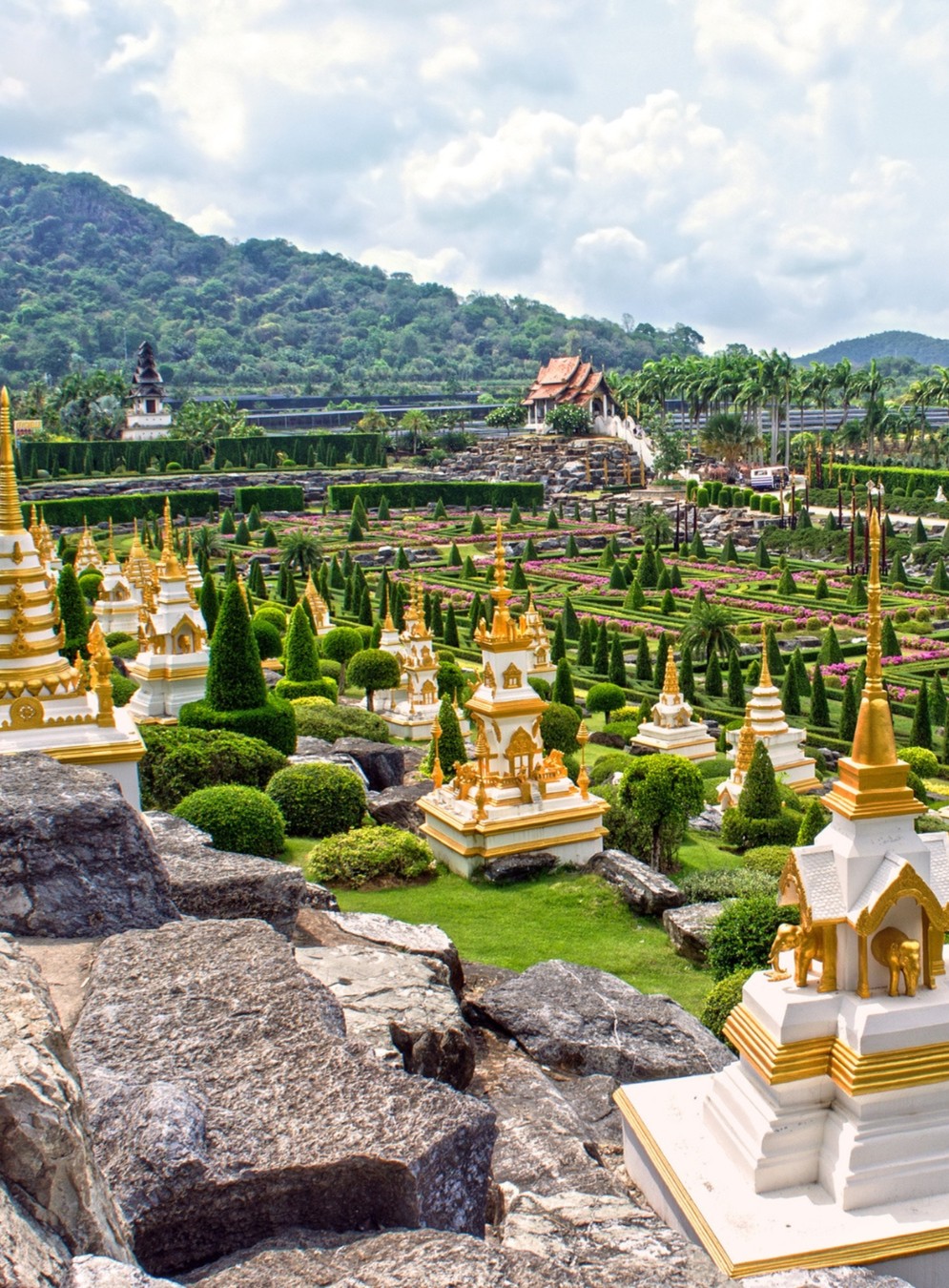 9:30 — тропический сад «Нонг Нуч» (Nong Nooch). Вы окажетесь среди французских террас, ковров из орхидей и зеркальных прудов. В этом саду легко забыть, что за воротами шумит Паттайя.