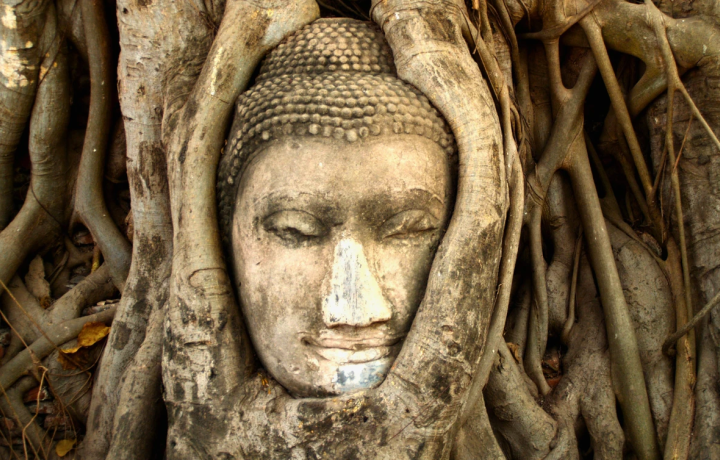 13:20–14:00 — Wat Maha That. Храм знаменит головой Будды, опутанной и вытащенной из земли корнями дерева — иконическим символом разрушения и возрождения