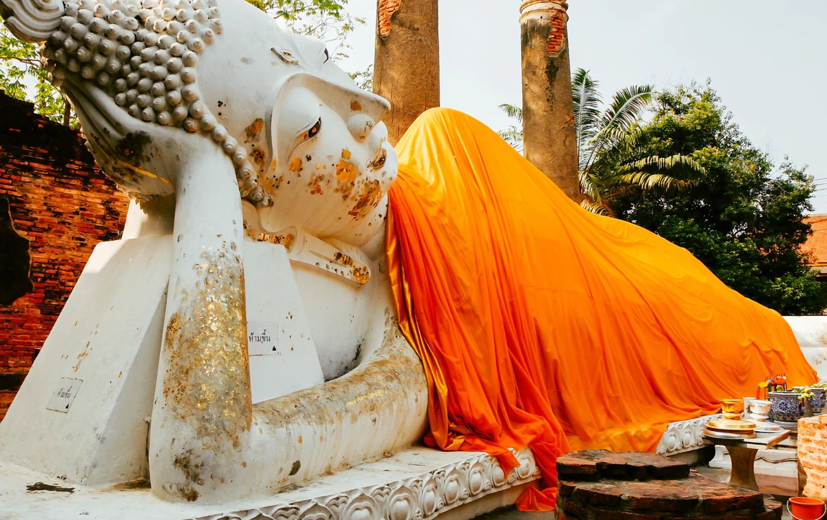14:10–15:00 — Wat Yai Chai Mongkol. Один из самых красивых храмов в Аюттайе. Вы услышите легенды об этом месте, увидите легендарную ступу — символ победы над бирманцами — и действующий храм с огромной статуей Будды