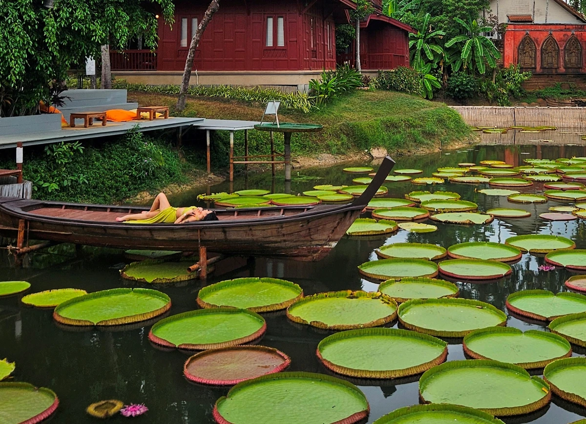 Отправимся к атмосферным прудам Ma Doo Bua — они известны гигантскими кувшинками. Здесь вы сделаете яркие фото и отдохнёте, попробуете тайский чай или местные десерты в уютном кафе с живописным видом.