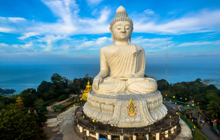 Погрузитесь в духовную атмосферу главного буддийского храма Пхукета — Ват Чалонг, сияющего в лучах солнца, и осмотрите величественную смотровую площадку у статуи «Большого Будды».