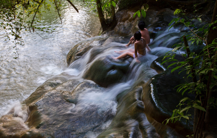 Далее — природный спа-комплекс с каскадным горячим водопадом и