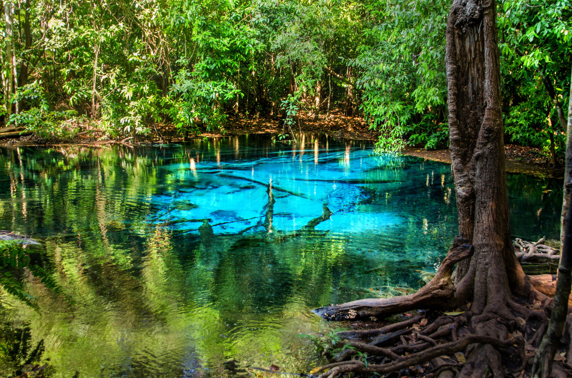 Утро начинается в лесном заповеднике «Банг Кхрам» и национальном парке «Танг Тао» («Thung Teao») — это настоящий тропический реликтовый лес. Воздух здесь плотный и влажный, наполненный ароматами зелени и звуками экзотических птиц. Главная драгоценность парка — знаменитое изумрудное озеро. Тёплая минеральная вода словно светится изнутри. Купание здесь — не просто отдых, а настоящая природная перезагрузка тела.