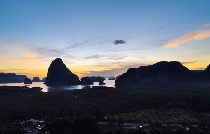 Финальная часть маршрута — смотровая площадка Самет Нангши (Samet Nangshe). Отсюда открывается панорамный вид на бухту Пангнга и десятки островов. Здесь также запланирован обед в ресторане с выбором тайской или европейской кухни.