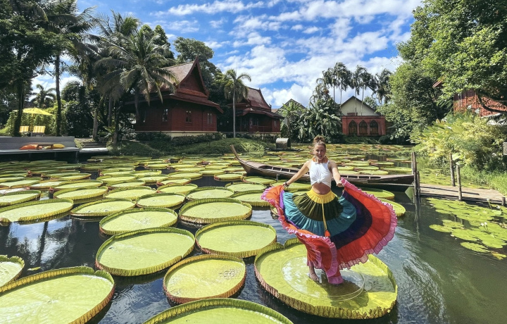 Главные виды Пхукета за одно утро. Прибудем на Самет Нангше как раз к тому моменту, когда солнце встает из-за известняковых скал залива Пханг Нга. Пьете кофе, завтракаете печеньем, снимаете рассвет. Уходим в море на длиннохвостой лодке. Маршрут: проплыть мимо того самого острова Джеймса Бонда, заглянуть в пещеры и мангровые лагуны, куда не доходят толпы. Дальше — пляж Май Кхао. Здесь нет волн и каждые 10 минут над головой с ревом проносятся самолеты. Финал в Ma Doo Bua. Кафе посреди пруда с гигантскими кувшинками (виктория амазонская), по которым можно ходить. Есть за доплату, но просто посидеть с коктейлем и посмотреть на эту ботанику — обязательно.