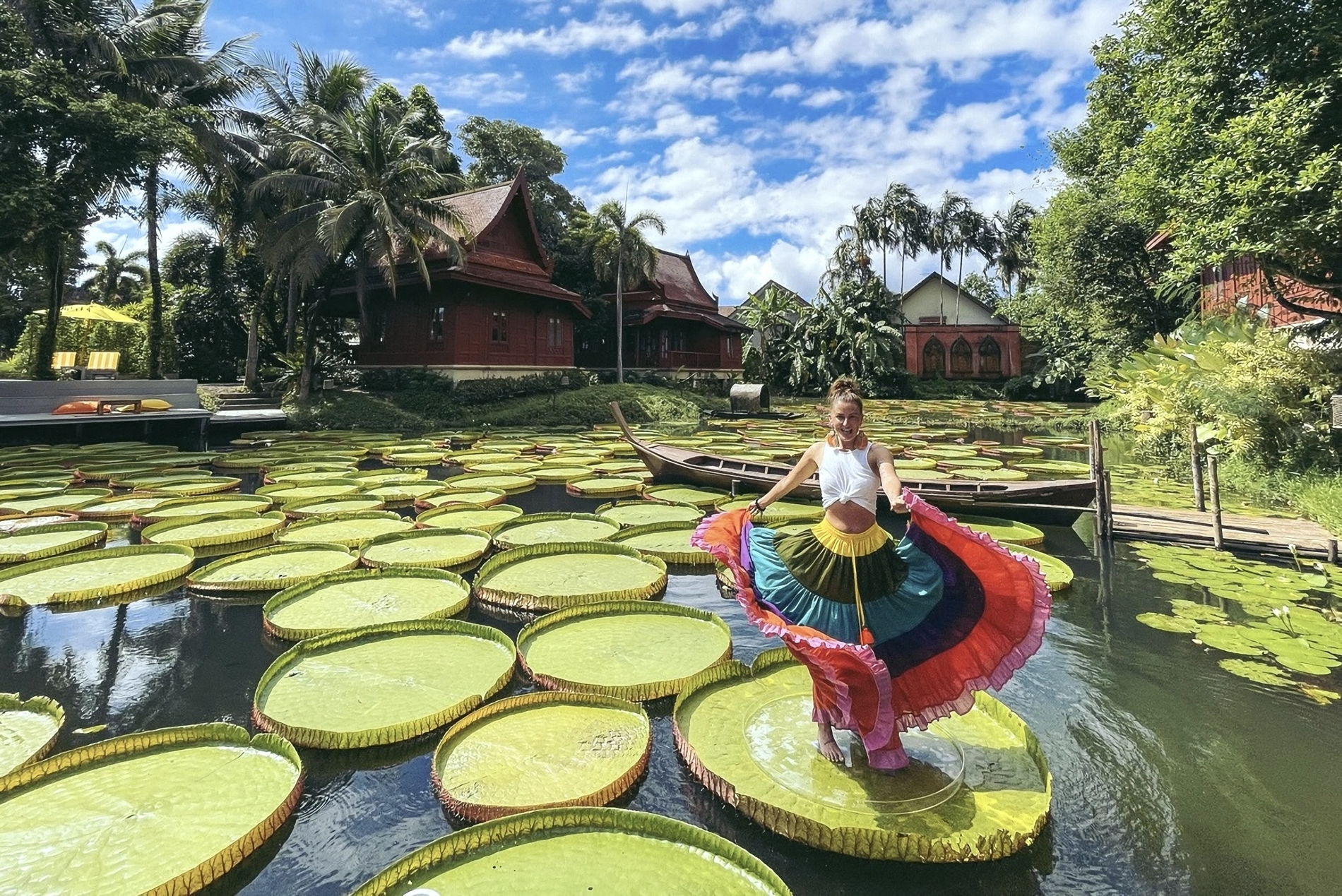 Выезжаем затемно, чтобы встретить рассвет на легендарной смотровой Самет Нангше. Дальше — длиннохвостая лодка к острову Джеймса Бонда, потом пляж, где самолеты заходят на посадку прямо над головой, и финал в кафе с гигантскими кувшинками Ma Doo Bua.