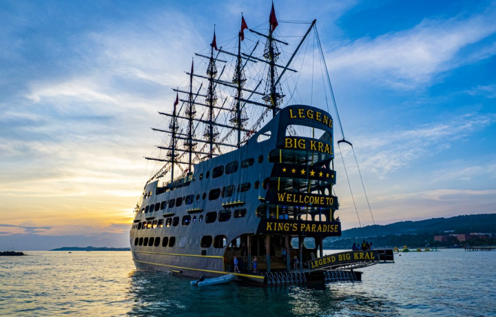 Начну с трансфера, водитель приехал и стоял на парковке за нами никто не удосужился прийти сами бегали искали, отель у нас был большой, поэтому автобусов на парковке было много. Далее когда мы зашли в автобус то мест не оказалось, ехали стоя. Благо нашли одно местечко и посадили туда детей. Далее сам корабль да он большой красивый, но на этом все. Анимации именно для детей нет, просто играет музыка на этом все. Корабль не выходит в открытое море, плавает вдоль берега туда обратно, и всего лишь три остановки, не в живописных местах, а просто вдоль береговой линии . Мы плавала в свое время из Кемера, Бодрума, Алании и Сиде, и каждый раз выходили в открытое море, плавали к островам и остановок никогда не было меньше 4. Питание это макароны холодные, рис, две ножки курочки, огурцы с помидорами.Такое себе, нам есть с чем сравнивать поэтому этот корабль оказался для нас разочарованием.Вообщем звезды ставлю только за пенную вечеринку, диджей тоже молодец, на этом все.