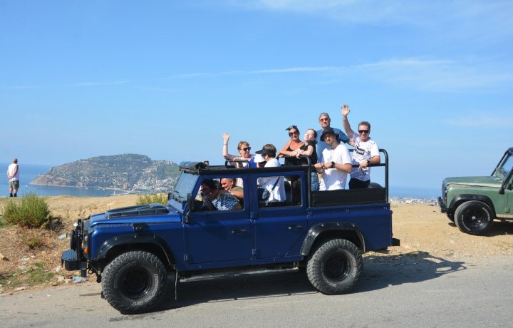 Первая остановка — знаменитый пляж Клеопатры и пещера Дамлаташ. У вас будет 40 минут свободного времени: прогуляться, искупаться или посетить пещеру (за доплату). После этого на джипах мы поднимемся к древней крепости, откуда открываются захватывающие виды на Красную башню и бухты Алании.