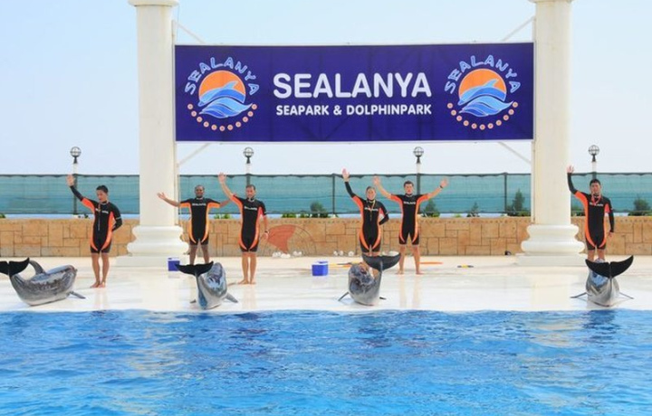 Дельфинарий в Алании ежедневно работает для посещения отечественных и зарубежных клиентов, которые хотят поплавать с дельфинами и наблюдать за их акробатикой.