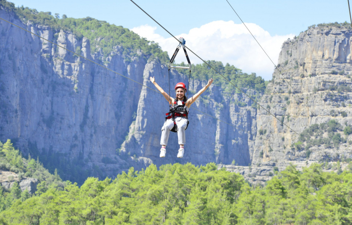 Каскадный водопад Куршунлу находится в одноимённом природном парке, что в 20 км к северо-востоку от Антальи. Вода ниспадает в озеро по уступам 18-метрового утёса. За прозрачной стеной водопада прячется узкий проход вдоль скалы. По традиции здесь загадывают желания, прикоснувшись к прохладным струям.