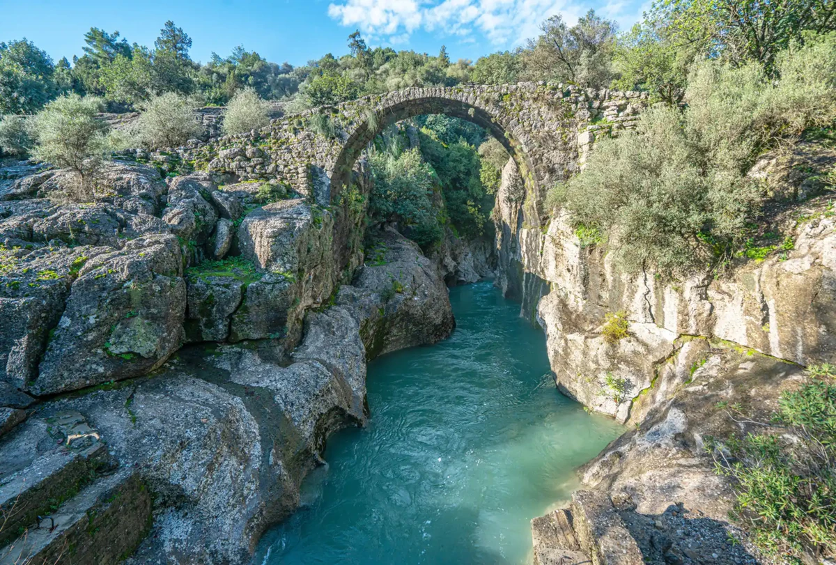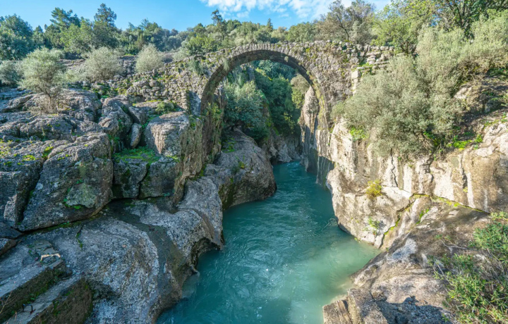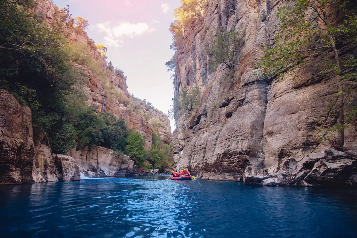 День начнётся в живописной долине парка «Кёпрюлю». Здесь вы сплавитесь по горной реке среди скал и сосновых лесов. Спокойные участки будут сменяться лёгкими порогами. Будете останавливаться, чтобы перевести дух и насладиться природой.