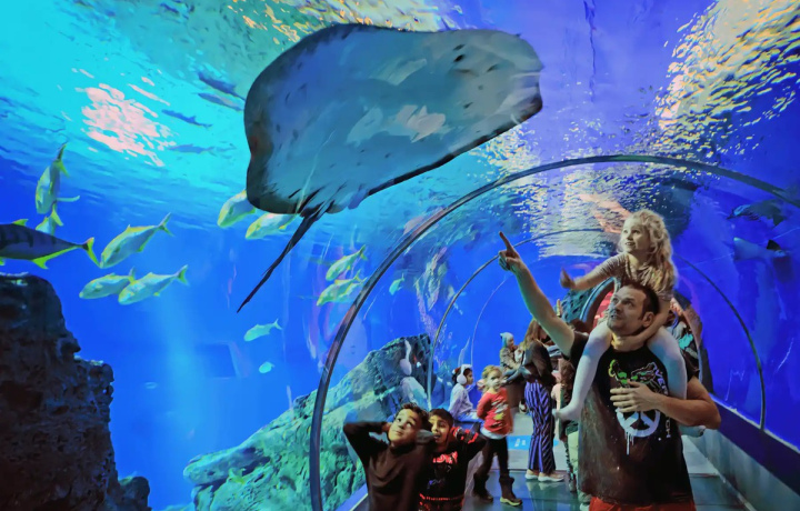 Мы заберём вас от отеля и доставим в океанариум. Это не просто аквариум, а настоящий подводный город. Вы взглянете на его обителей с необычного ракурса снизу вверх — будто сами оказались на морском дне. За 2,5 часа без спешки познакомитесь с разными экосистемами и увидите редких рыб, а затем — трансфер обратно.