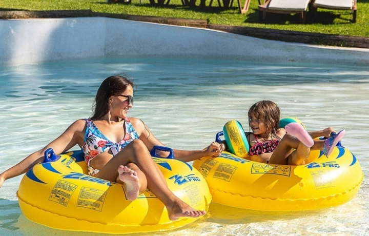 Также вы сможете расслабиться на Lazy River, испытать драйв на Crazy River, или отдохнуть в волновом бассейне, джакузи и бассейне с водопадом среди тропической зелени.