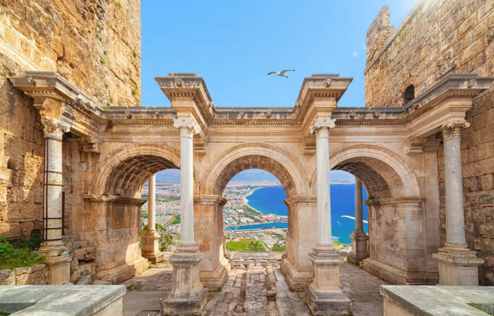 Ваш день начнётся с комфортного трансфера из отеля. Первая остановка — исторический район Калеичи. Это сердце старой Анталии, где узкие улочки хранят дух Османской эпохи. Гуляя вместе с гидом, вы увидите знаменитые ворота Адриана, Часовую башню, Рифлёный минарет и старинные особняки. Прогулка займёт около часа и завершится у старой гавани, которая была главным портом города в течение многих веков.