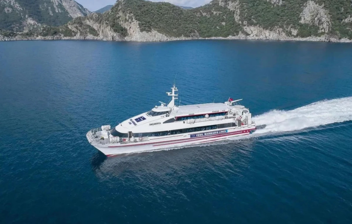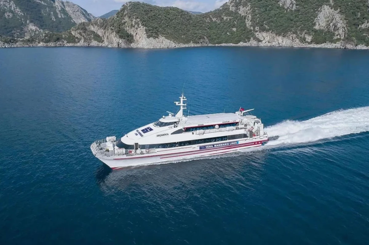 Вы пересядете на скоростной паром и проведёте час, любуясь морскими видами и побережьем Турции и Греции.