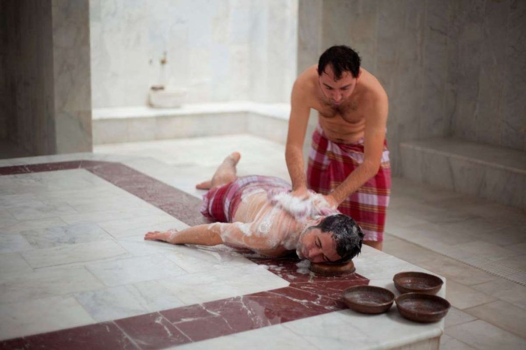 Затем ваши сопровождающие (теллак для мужчин и натир для женщин) начнут процедуру: они польют вас горячей водой и очистят скрабом каждый сантиметр вашего тела. После этого, намылив тело жидким мылом и голову шампунем, вам предлагается выбор: массаж всего тела (надо сказать, что он немного болезненный в первый раз, но стоящий того) или другие виды массажа. Мужчины и женщины, работающие в турецких хамамах, делают чрезвычайно бодрящий массаж. Если вы готовы к этому, то они поработают над вашим стрессом и усталостью.