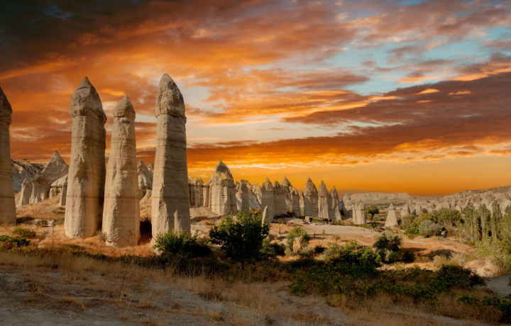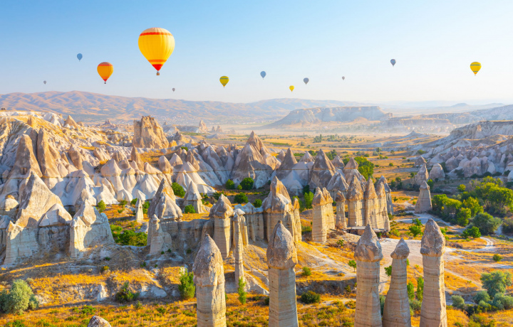 • Гёреме — это сердце Каппадокии, окруженное сказочными «дымоходами» и историческими памятниками. На рассвете небо озаряется яркими цветами, когда воздушные шары начинают свой полет. С этого места открывается захватывающий вид на долины и памятники, что делает его отличным местом для фотографий.