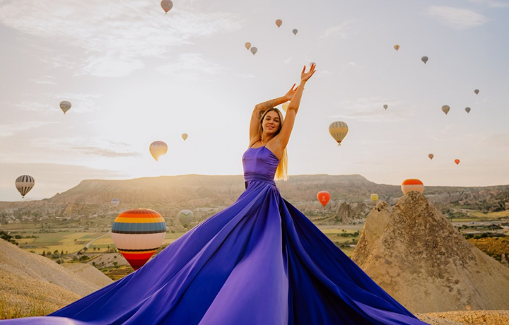 Фотосессия в Каппадокии — это кадры мечты! Представьте: мягкий рассветный свет, сотни воздушных шаров и вы. Мы посетим Долину Любви и другие смотровые площадки в зависимости от полёта шаров. Девушкам подберём длинные летящие платья — вы почувствуете себя героиней восточной сказки и запомните магию этого момента.