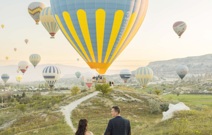 Фотосессия проходит в расслабленной атмосфере: вы будете любоваться красотой Каппадокии, получать удовольствие от момента и наслаждаться волшебным рассветом.