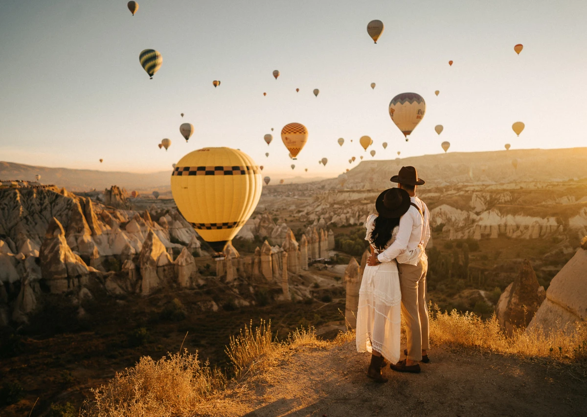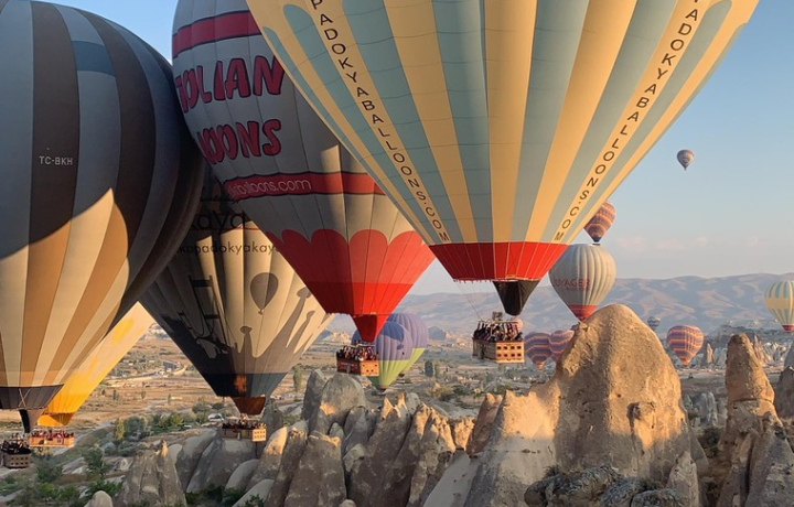 Рано утром мы отправимся в два романтичных места Каппадокии — и вы будто окажетесь на другой планете. Рассмотрите потрясающие ландшафты и «дымоходы» в Долине Любви, увидите, как солнце играет на цветных скалах Розовой Долины. А ещё полюбуетесь сотнями воздушных шаров в воздухе и сфотографируетесь на память.